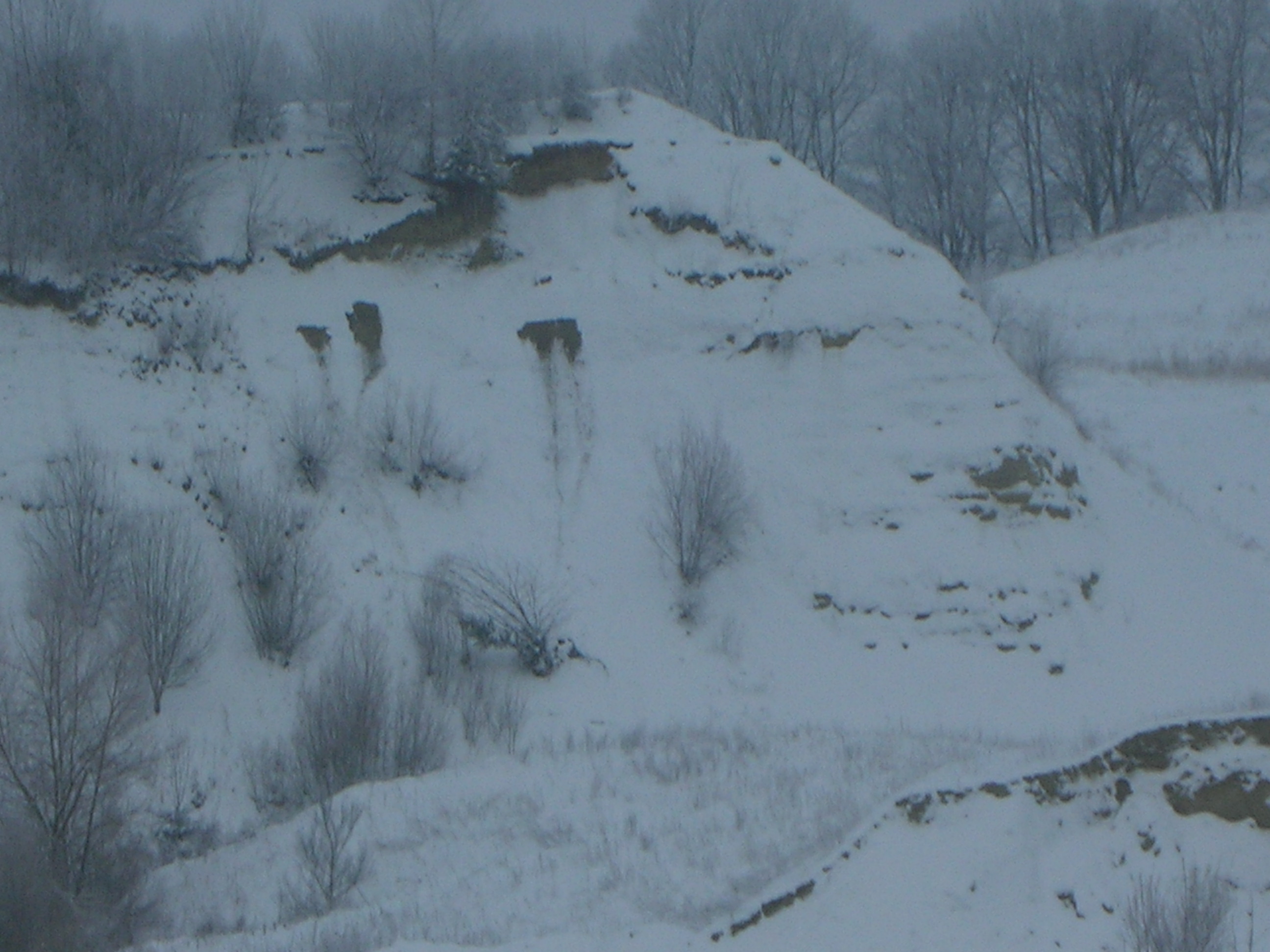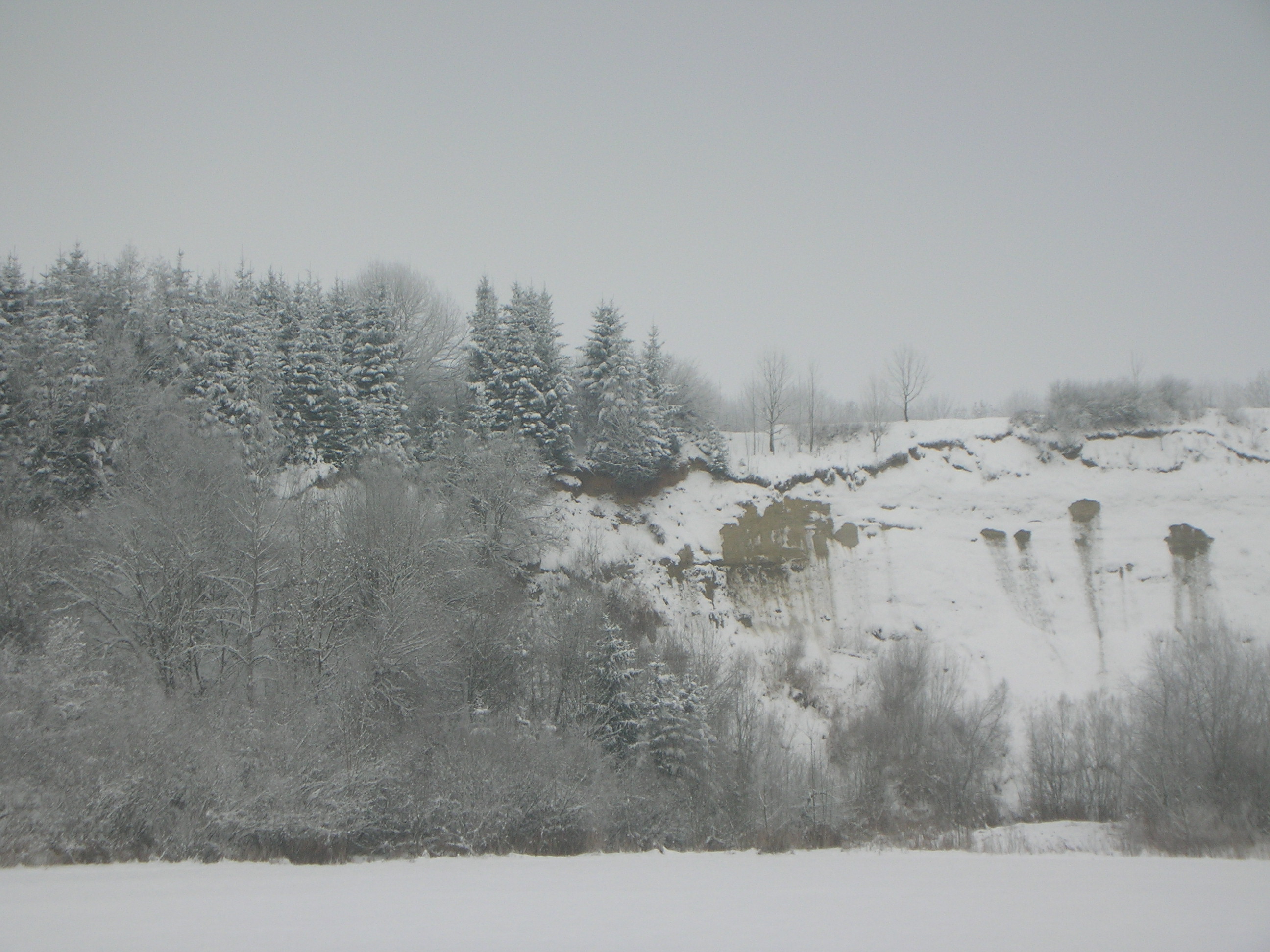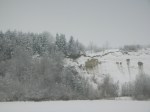 Der Lehmhang ist winterlich weiß und schaut unberührt aus und so friedlich. Es fahren zur Zeit keine Laster und man kann sich schwer vorstellen, dass das bald wieder anders sein soll. Für die Natur ist viel Schnee gut, für den Mensch manchmal lästig!
