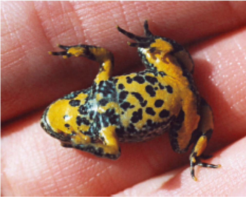 Die Gelbbauchunke (Bombina variegata), auch Bergunke genannt, gehört innerhalb der Klasse der Amphibien zur „urtümlichen“ Familie Bombinatoridae (in vielen Übersichten wird sie aber noch zu den Scheibenzünglern gestellt) und zur Gattung der Unken. Der kleine, spitzwarzige Froschlurch hat eine unscheinbar gefärbte Oberseite, während die Bauchseite eine leuchtend gelbe Warnfärbung aufweist. Die Art kommt regional auch in Mitteleuropa vor und bevorzugt als Lebensraum lehmige Pfützen und Kleintümpel.