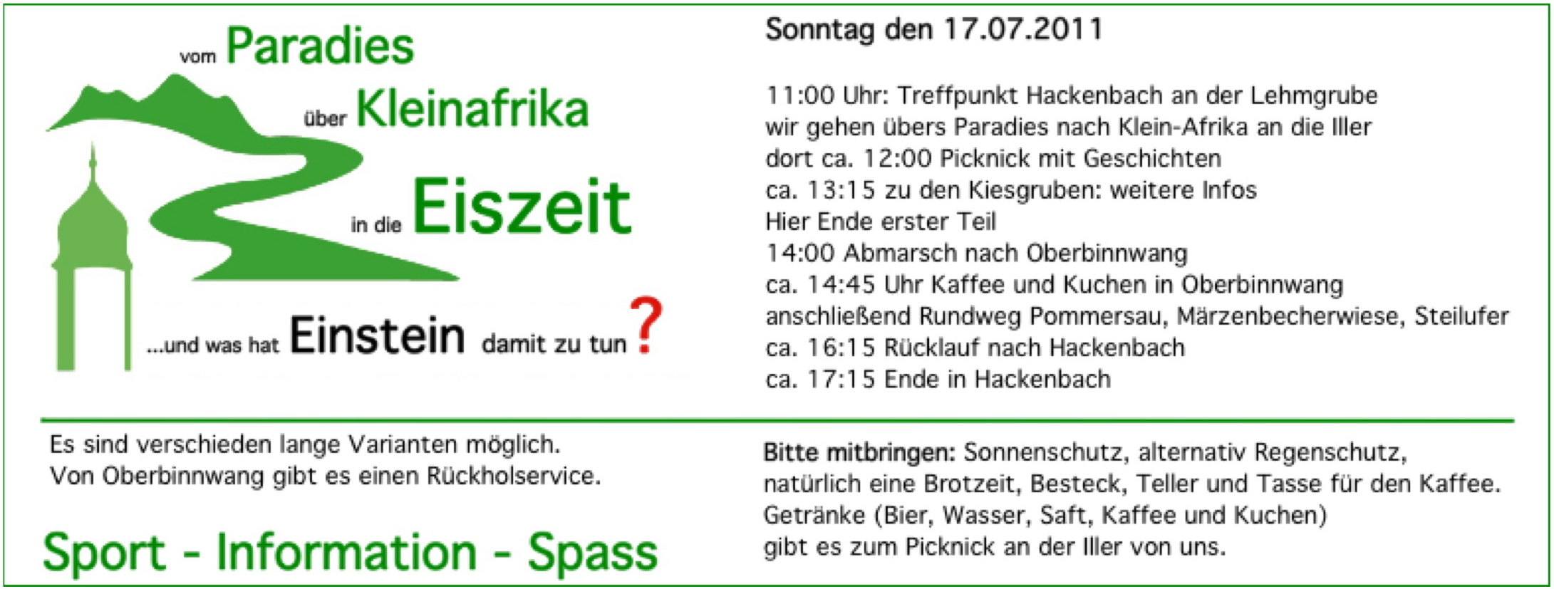 Wir treffen uns diesen Monat am kommenden Donnerstag den 14.07.2011 um 20:00 Uhr im Gasthof Schweighart. Wir werden besprechen: die Klage der Firma Soladis und wie geht es weiter damit, unsere Wanderung mit Picknick am nächsten Sonntag den 17.07.2011 bei schönen Wetter und was wir uns für den Herbst vornehmen. Wenn es irgendwie geht, werden wir im August wieder ein gemütliches Grillen organisieren: denn wer so fleißig arbeitet, darf auch feiern!