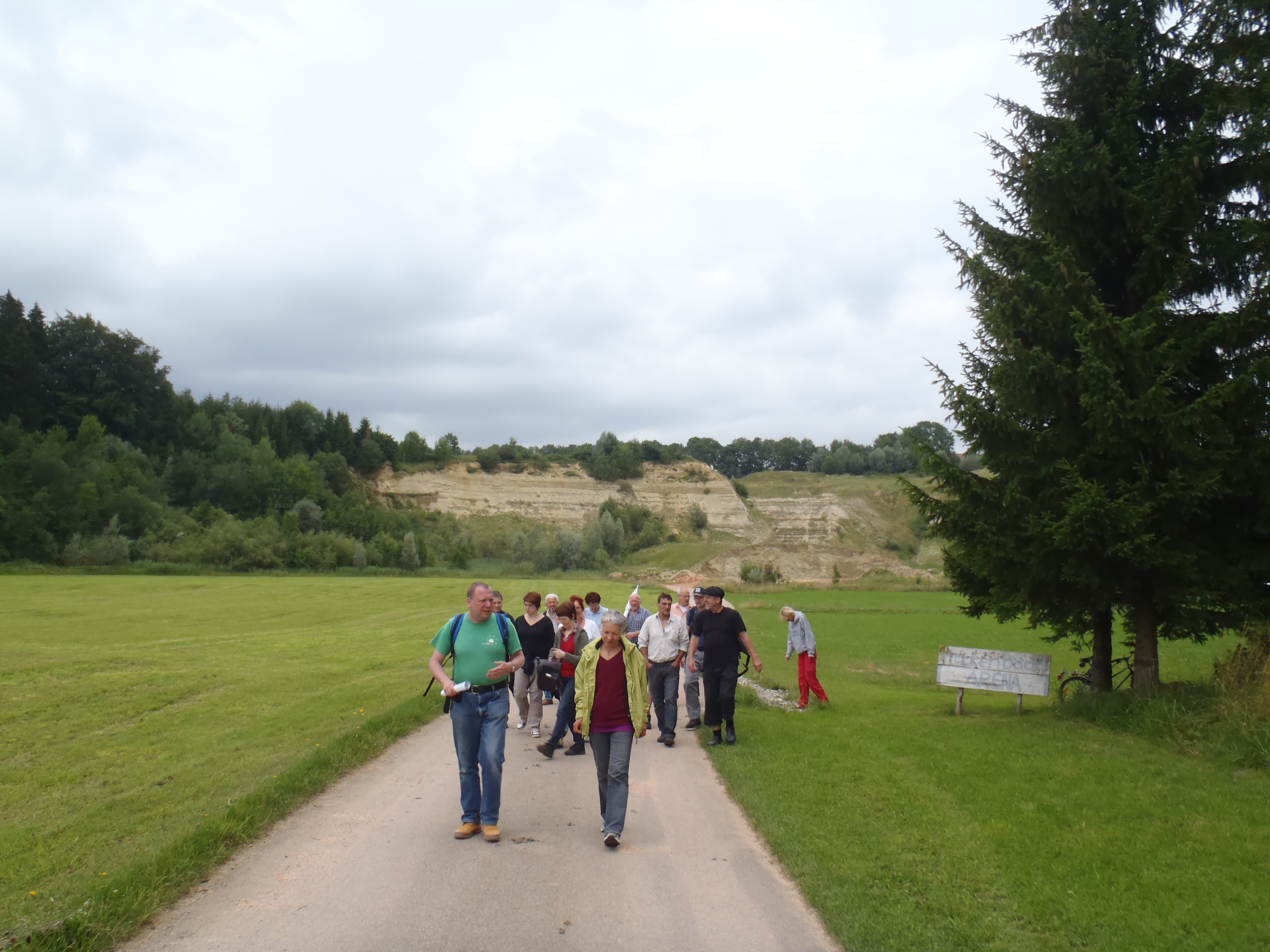 Am Rastplatz der Hackenbach-Arena trafen wir uns und erfuhren zuerst das neueste vom Verfahren zur Lehmgrube und danach (wie im gesamten Verlauf der Wanderung) interessante Informationen zu den einzelnen Stationen. Christof Zahalka erzählte zuerst die Geschichte der Ziegeleien in Kronburg und speziell die Geschichte der Ziegelei in Hackenbach. Danach äusserst interessante Informationen zu Landschaft / Lehm/ Kies in und um Kronburg. (Wir werden alle diese Informationen hier noch veröffentlichen).