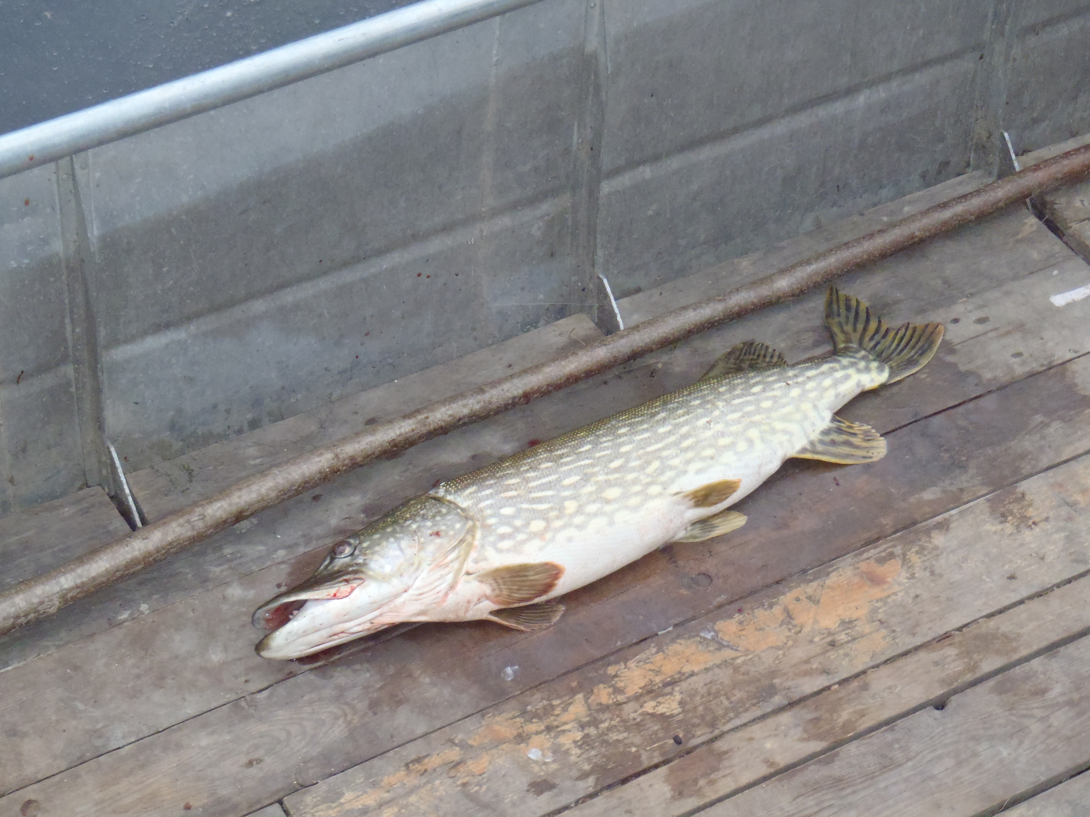 Hier wurden wir ganz herzlich empfangen und erhielten sofort eine Führung durch sein „Paradies“, mit den entsprechenden Erläuterungen. Zuerst zum Namen: gegenüber gibt es ein Gebiet, das heisst schon immer Afrika. Und als sein Vater dann 1938 an der aufgestauten Iller (dies hier war das erste Illerkraftwerk) diese Rundhütte baute, hieß es dann eben „Klein-Afrika“. Seit dieser Zeit steht diese schöne äußerst gemütliche Holzhütte. Im beeindruckenden Bootshaus (einige zweifelten stark an der Statik des Gebäudes) erfuhren wir viel über den früheren Fischreichtum der Iller. Wie um dies zu dokumentieren kam (zum Glück als unser Picknick zu Ende und wir satt waren) ein für die meisten riesiger Fisch angeschippert.