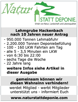 Unterstützen Sie uns, werdet Mitglied., werbt Mitglieder! Gemeinsam können wir viel erreichen. Alle Infos unter www.naturstattdeponie.com