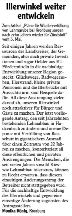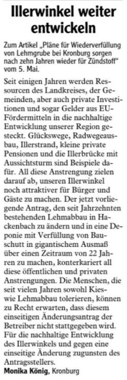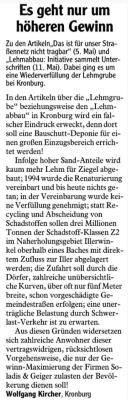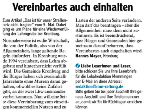 Hier die Leserbriefe zum Artikel Lehmabbau in der Memminger Zeitung